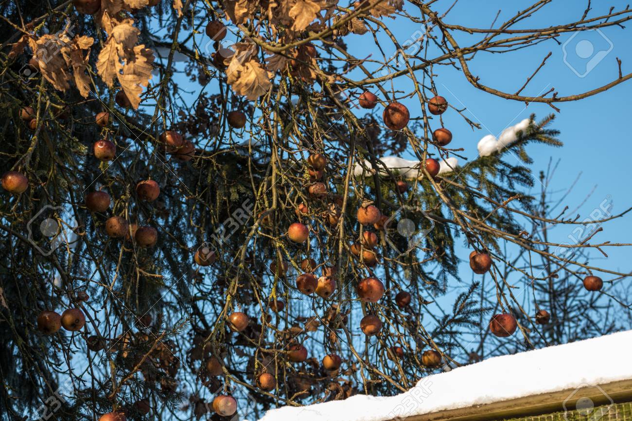 Apples Left On The Trees In Freezing Winter Apple Tree Stock