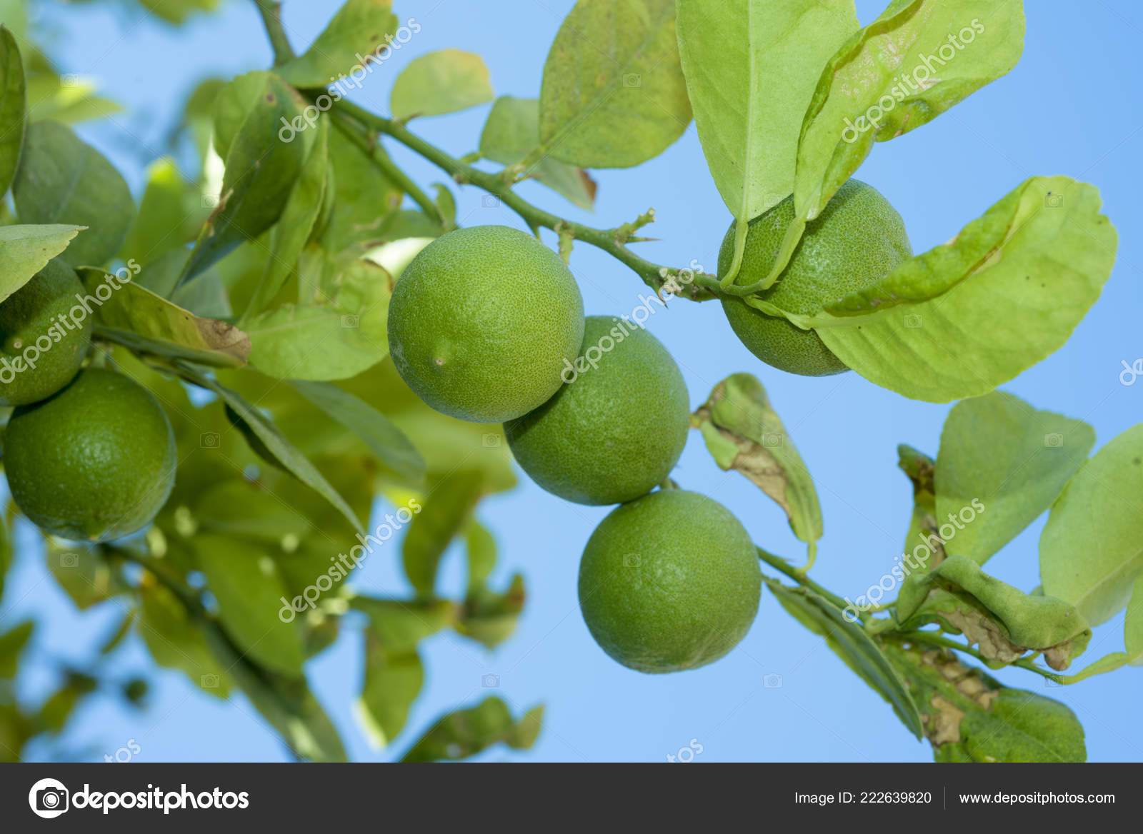 Branches Lime Tree Fruits Blue Sky Background Stock Photo C A