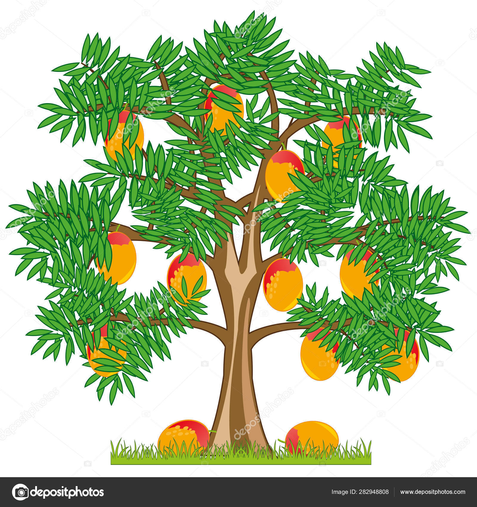 Vector Illustration Tree With Ripe Fruit Mango Stock Vector