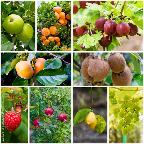 Different Trees And Fruits Collection Of Fresh Ripe Fruits And