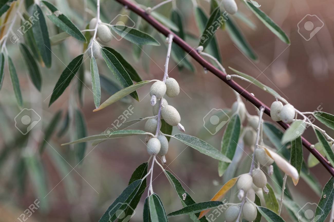 Fruits Of A Russian Olive Tree Elaeagnus Angustifolia Stock