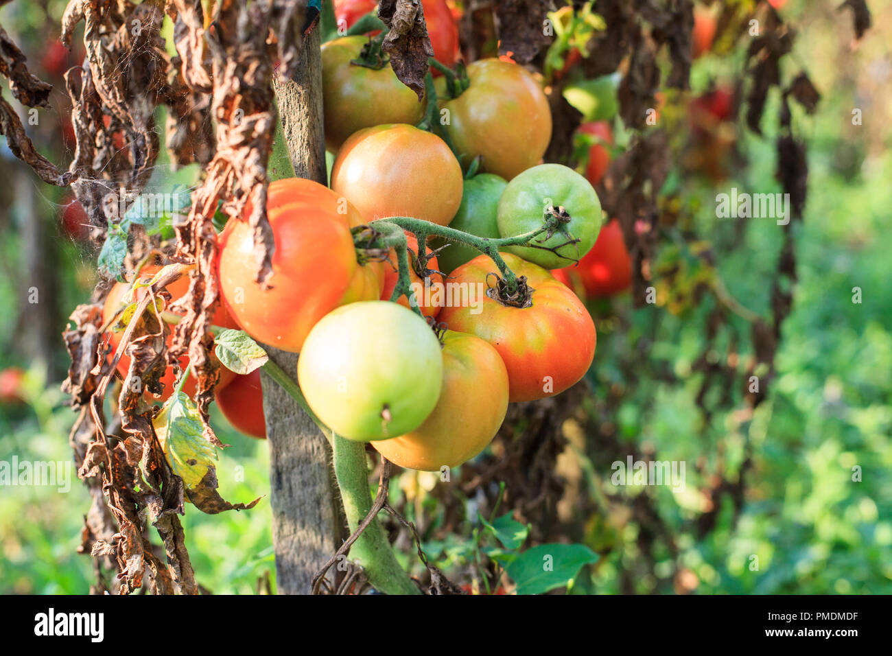 Homegrown Organic Tomatoes Growing In Garden Cultivated Non Gmo