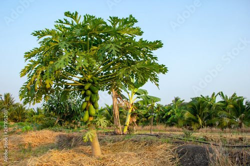 Papaya Tree Full Of Fruits Some Ripe Some Unripe Stock Photo