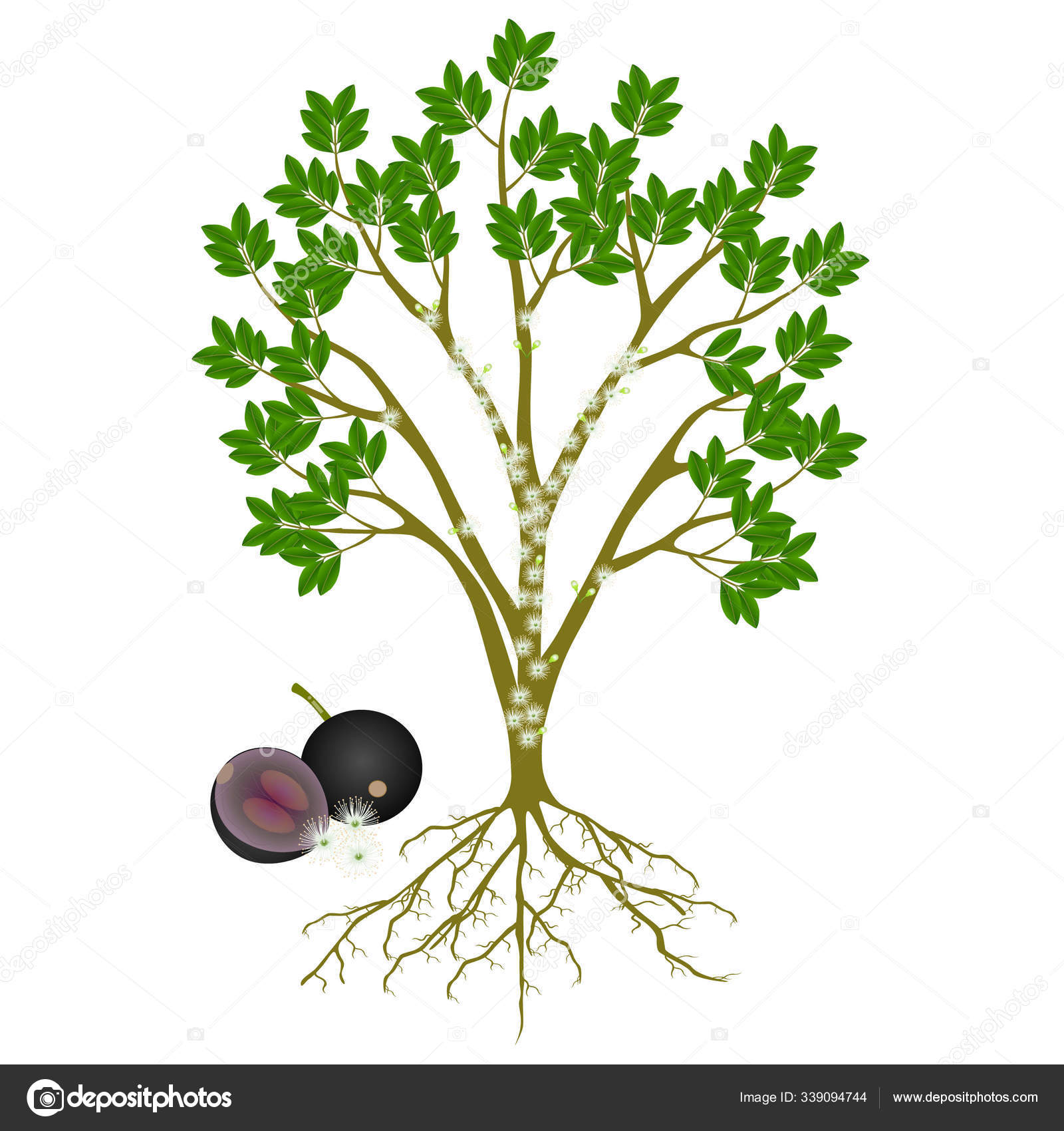 Jaboticaba Brazilian Grape Tree Roots Flowers Fruits Stock