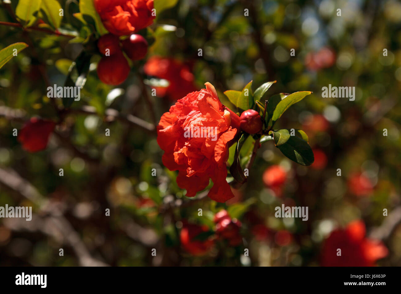 Pomegranate Tree Punica Granatum Flowers And Bears Fruit In The