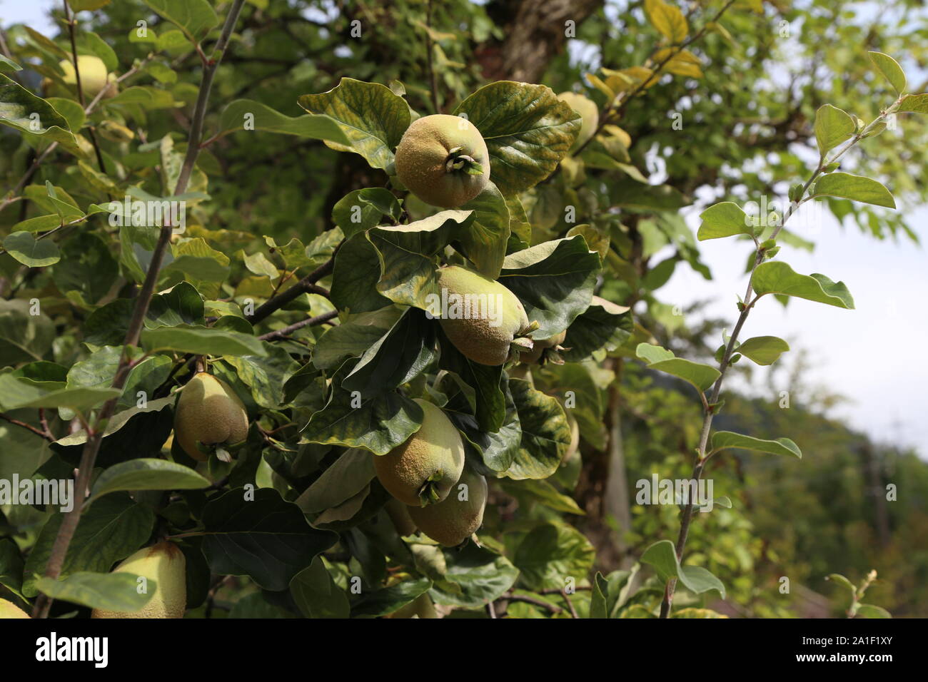 Ripe Yellow Quince Fruit Grows On A Quince Tree With Stock Photo