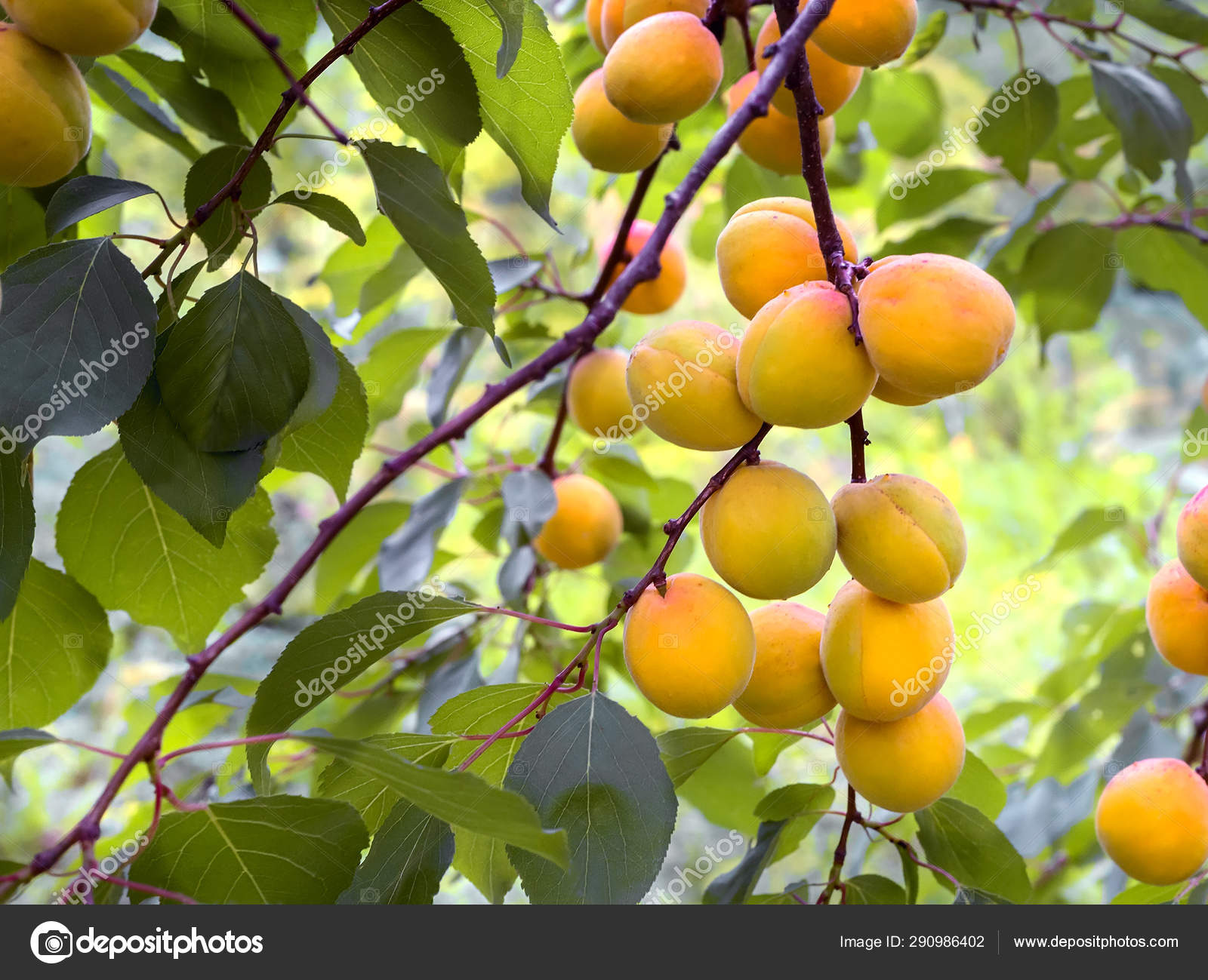 Ripe Apricot Fruits Grow On Tree Branches Stock Photo
