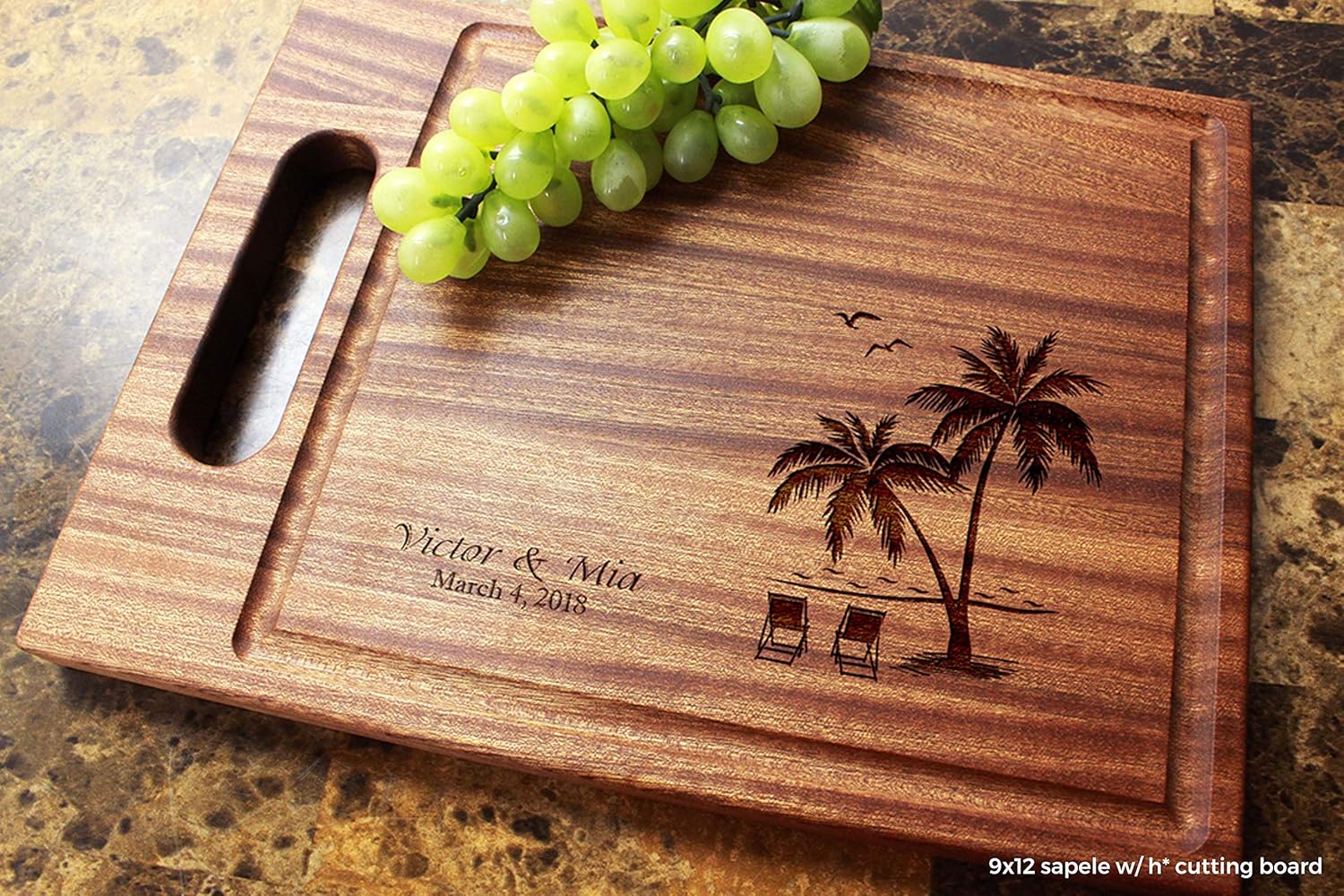 Beach Palm Trees Personalized Engraved Cutting Board With Handle