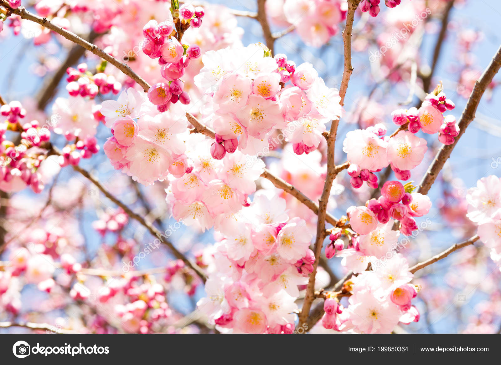 Pink Cherry Blossom Beautiful Flower Heads Fruit Tree Stock