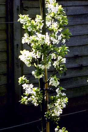 This is just about pruning cordons there is a much longer piece on growing cordon fruit trees if you would like to know more. They are trained to canes fixed to horizontal wires 60cm 2ft apart three wires for a 18m 6ft fence. A cordon fruit tree wont remain a cordon if it isnt pruned correctly.