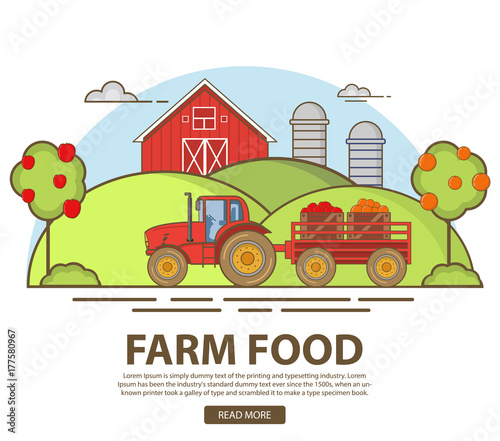Agriculture Garden Apples Oranges Harvesting By The Tractor