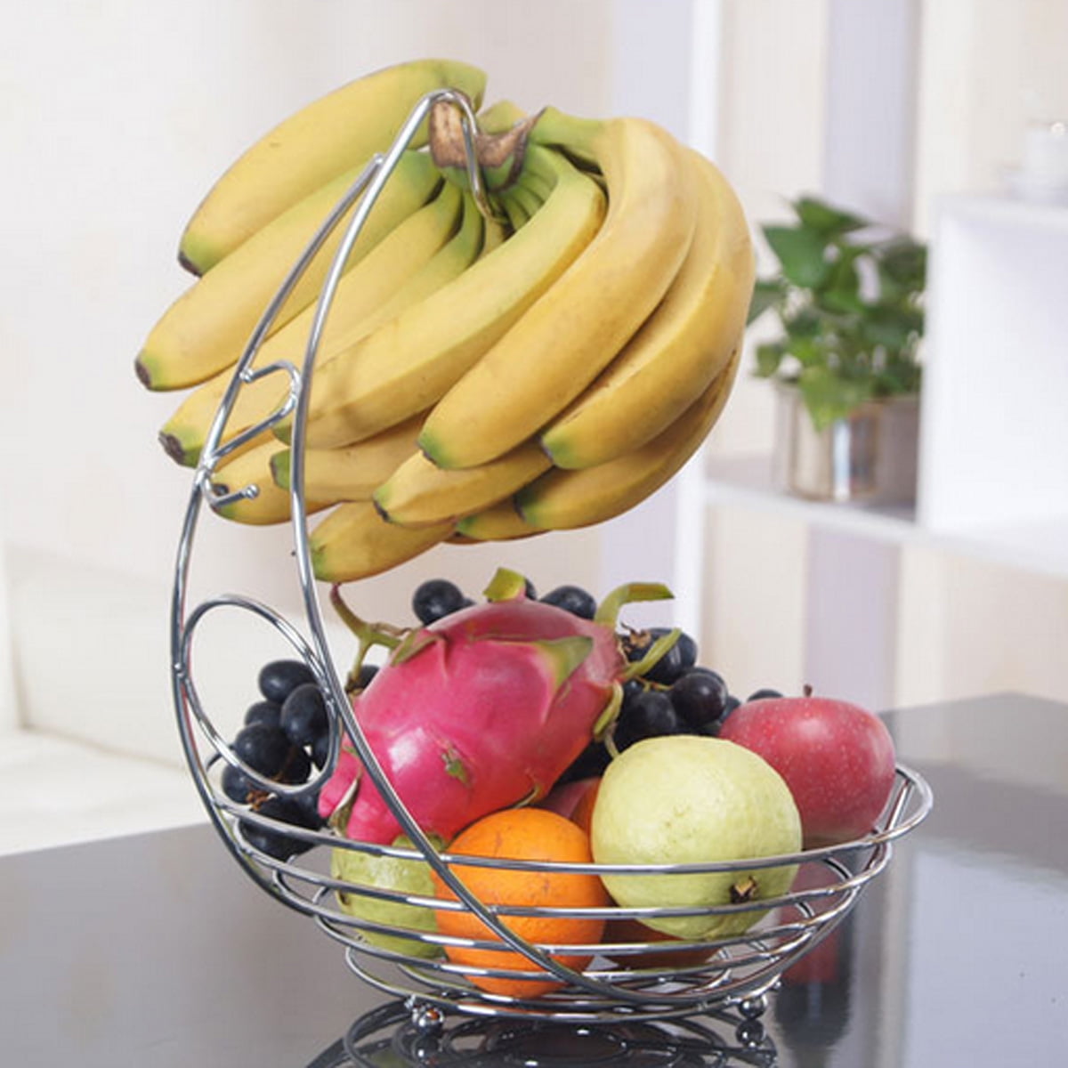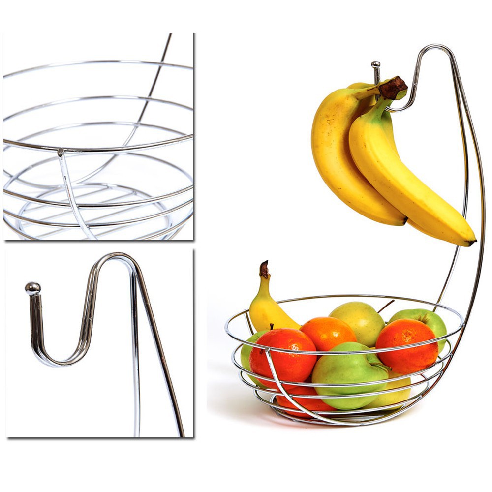 New 2 In 1 Chrome Banana Hook Hanger Tree Fruit Bowl Basket Stand