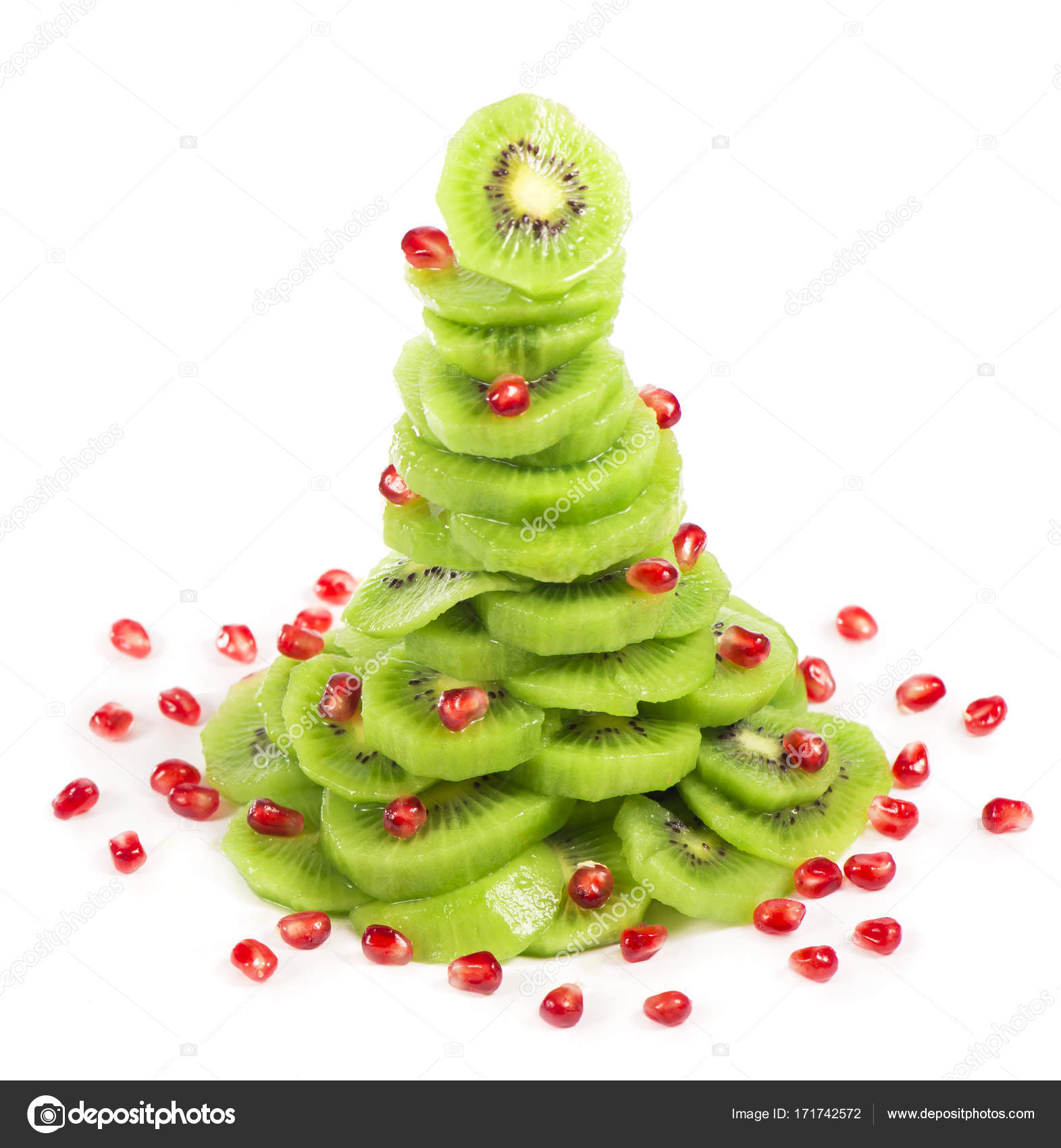 Christmas Tree With Kiwi And Pomegranate Stock Photo