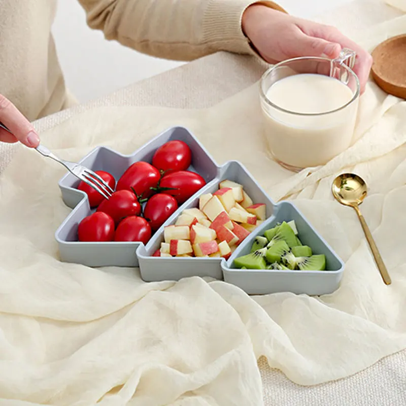 Christmas Tree Shape Fruit Tray Snack Creative 3 Grids New Year