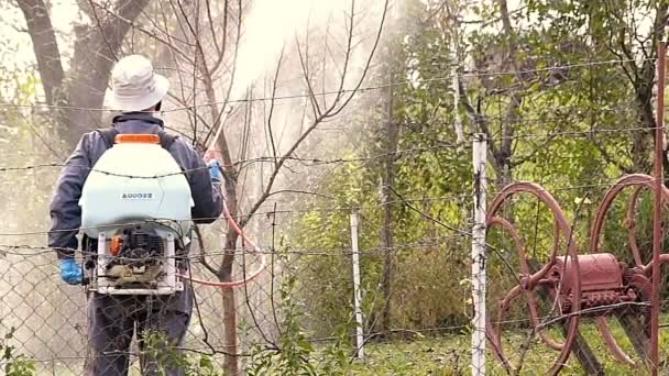 Gardener Spraying With Copper For Protection Of Fruit Trees