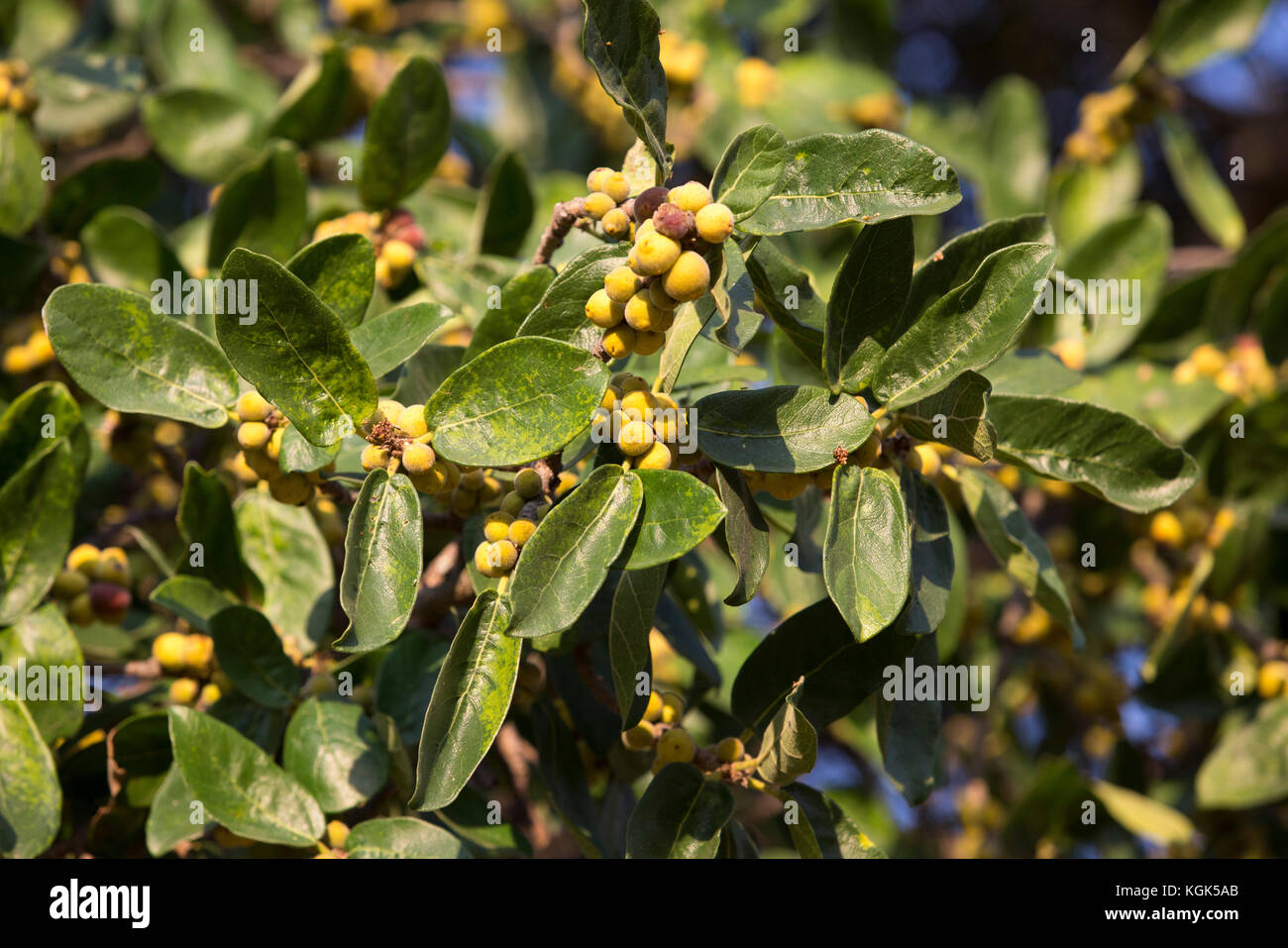 Leaves And Fruit Of A Mountain Rock Fig Tree Ficus Glumosa Stock