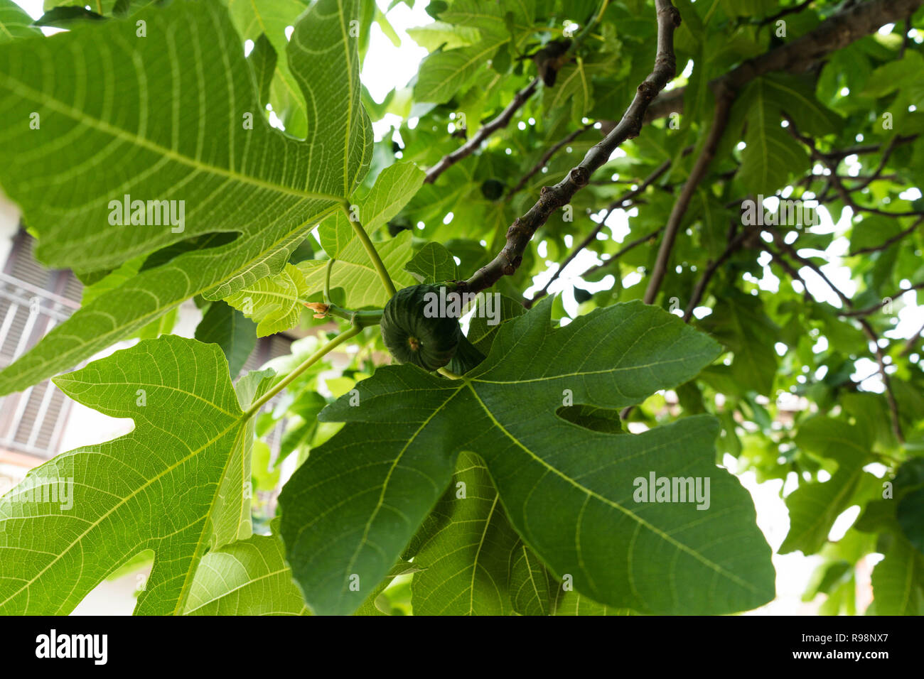 Leaves Of A Fig Tree With Fruit Stock Photo 229459503 Alamy