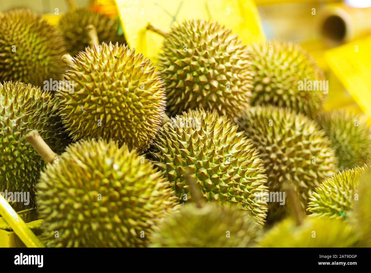Fresh Stinky Durian Fruit In A Window Display Of A Street Asian