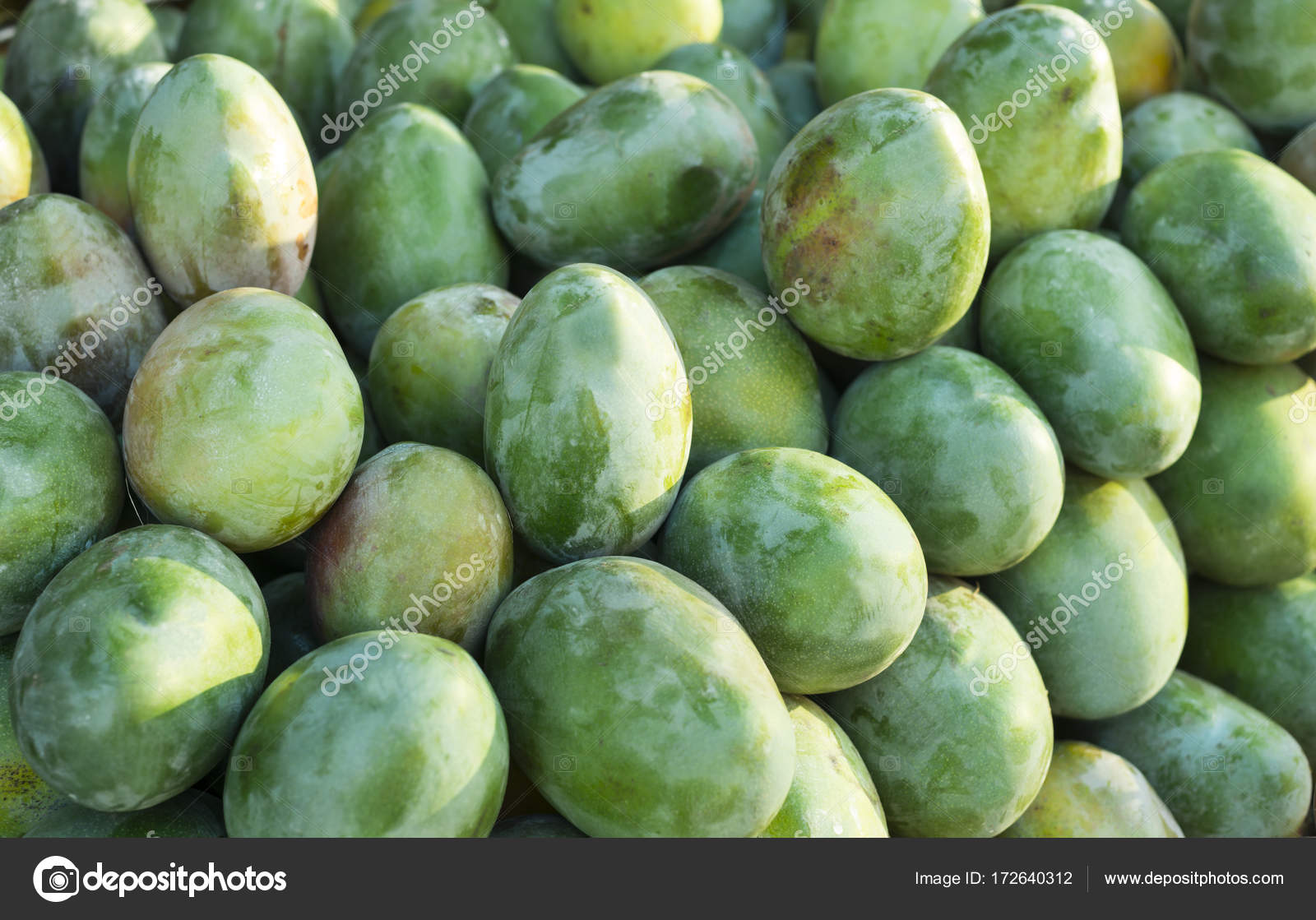 Fresh Colorful Tropical Mangoes On Display At Outdoor Farmers