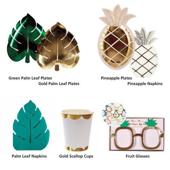 Pineapple Paper Plate In Gold Foil Tropical Fruit Party Etsy