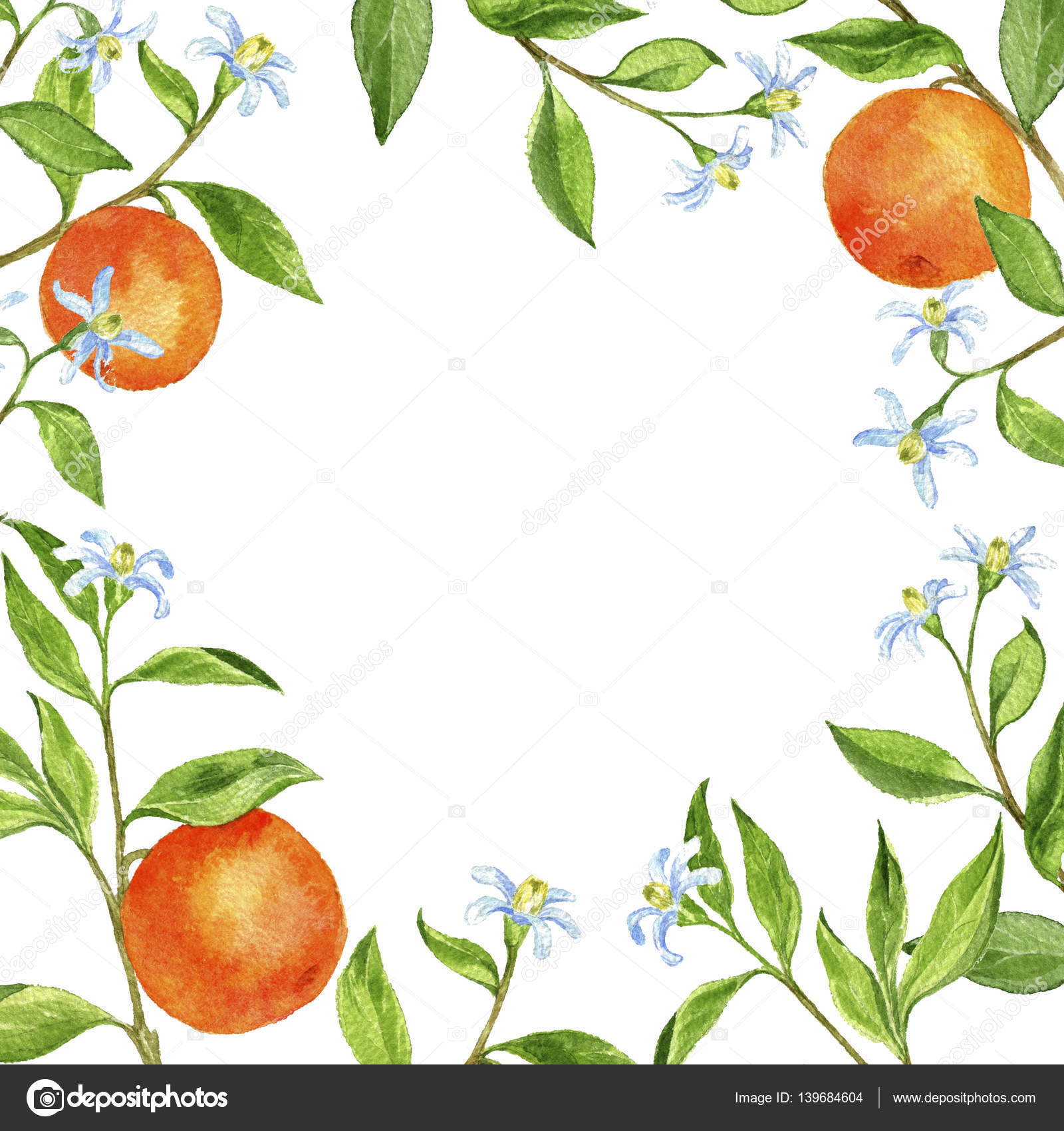 Background With Fruit Tree Branches Flowers Leaves And Oranges