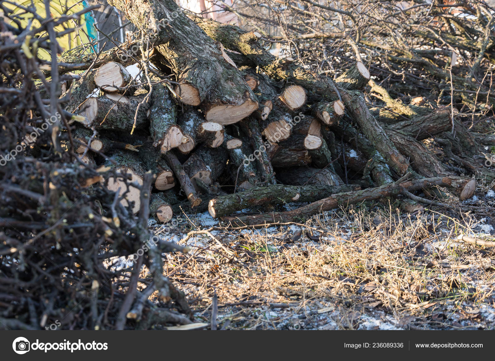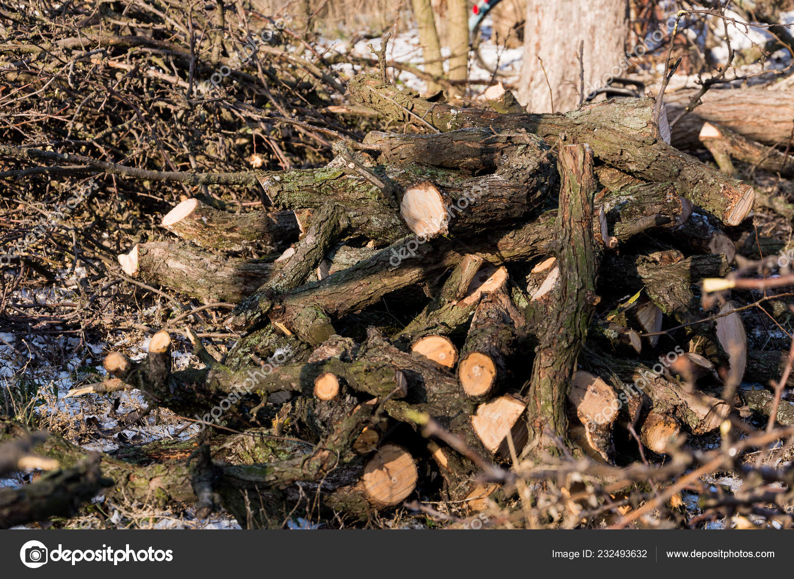 Gardening Pruning Fruit Trees Winter Pile Firewood Stock Photo