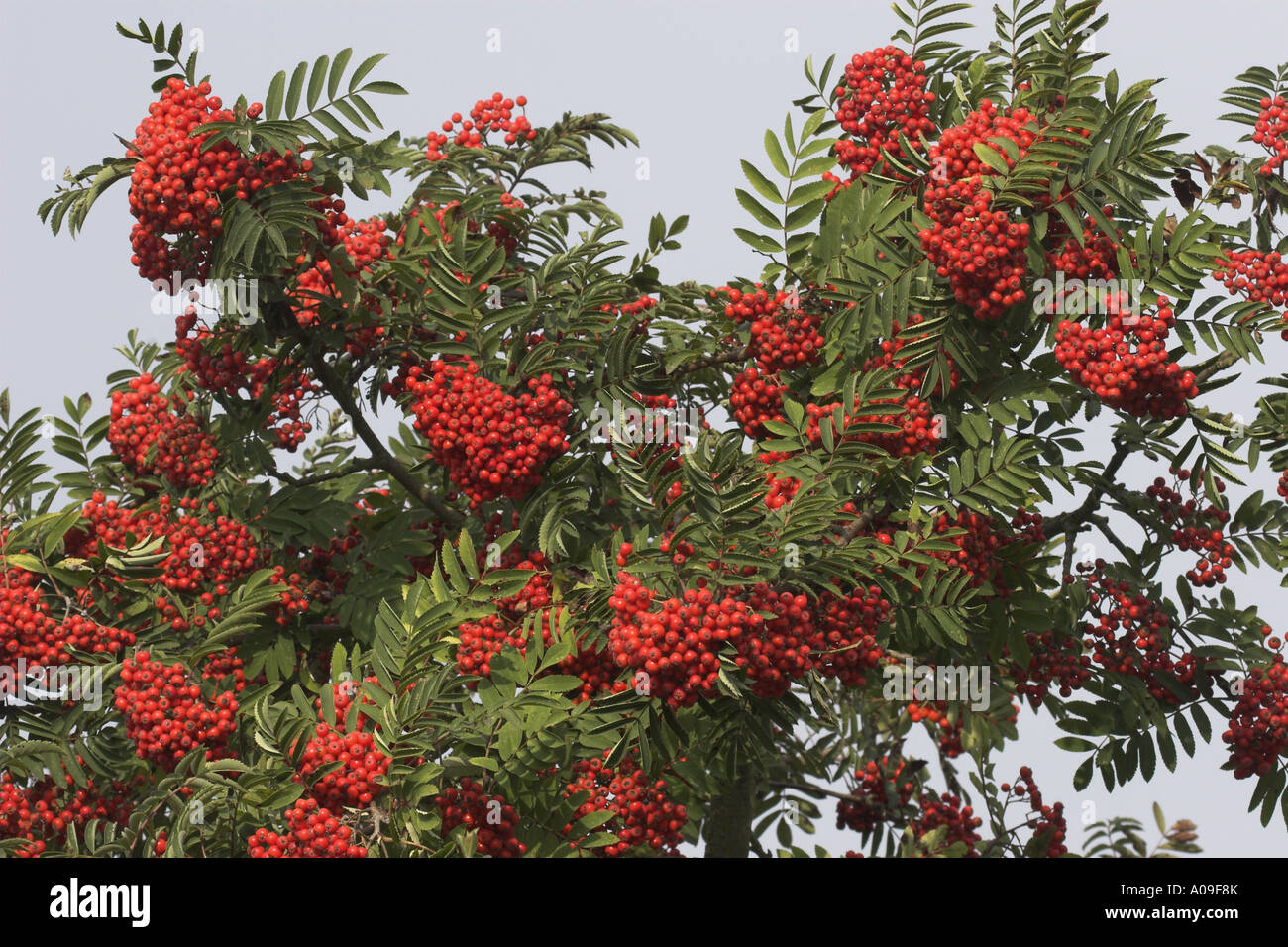 European Mountain Ash Rowan Tree Sorbus Aucuparia Fruits Stock