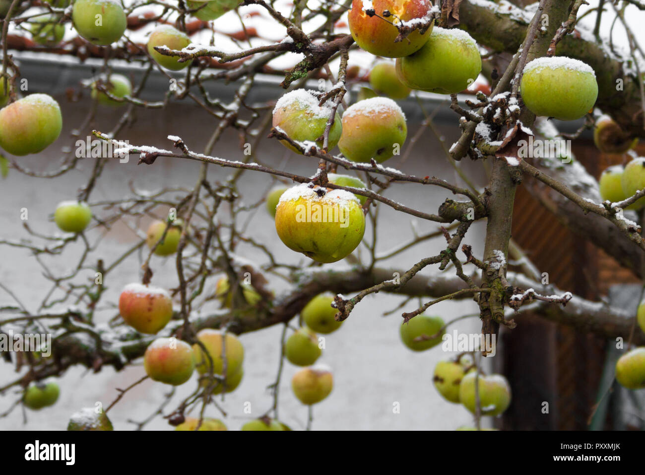 An Apple Tree In Winter All The Hanging Apples On The Branches