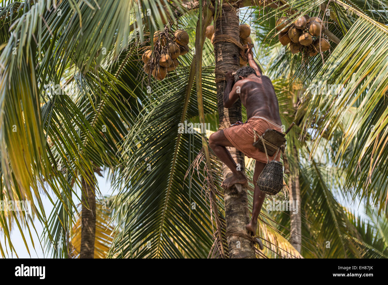Toddy Tapper Climbing A Coconut Palm Palm Wine Production Near