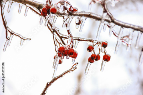 Branches Of Trees And Fruits In Winter Covered With A Crust Of Ice