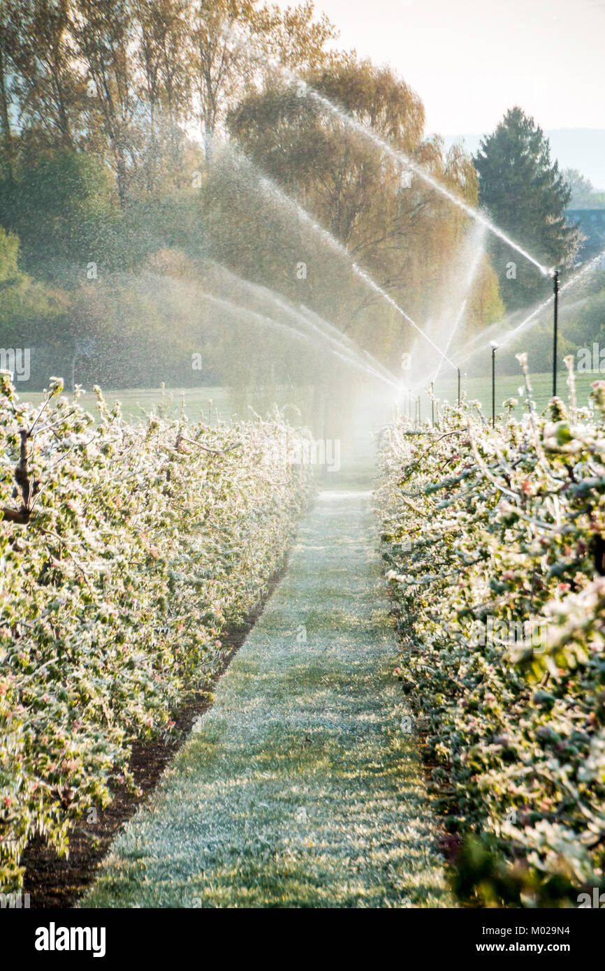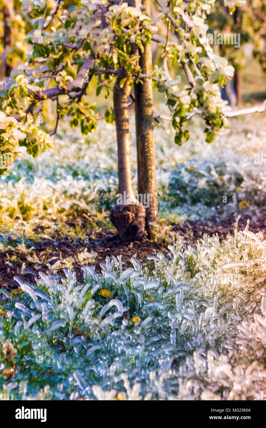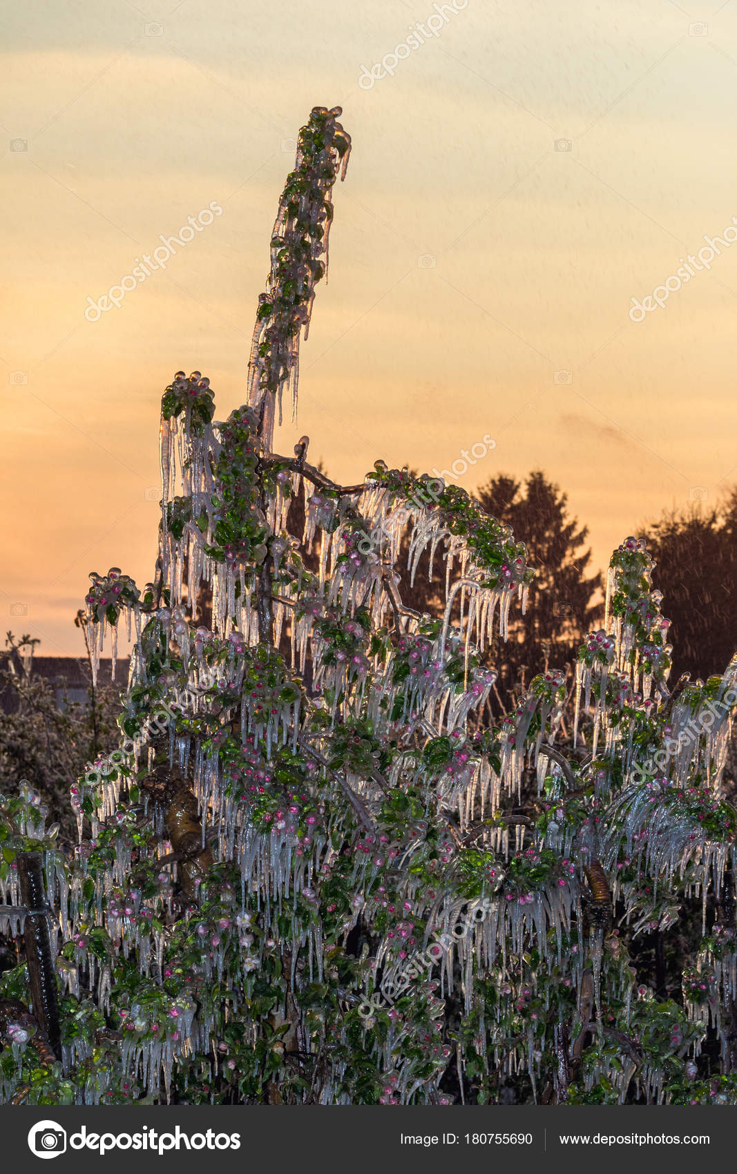 Layer Of Protective Ice Covering Fruit Trees Stock Photo