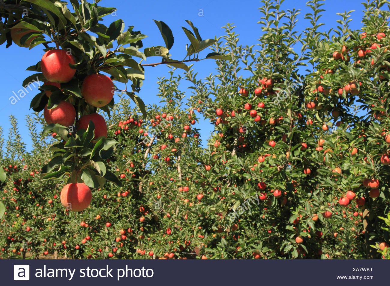 Fruit Trees In Orchard Organic Farming Green Grass Stock Photo