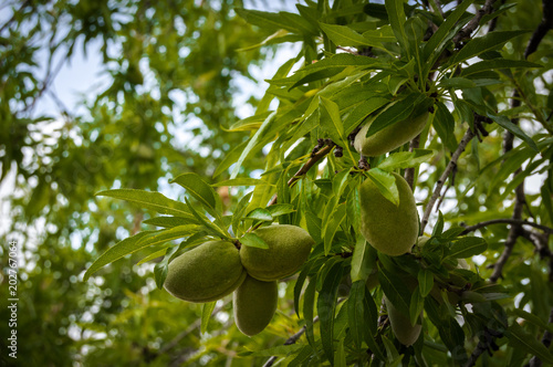Branch Of A Almond Tree With A Bunch Of Delicious Fruit Growing