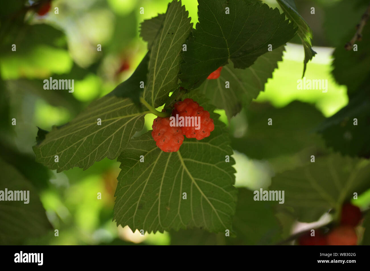 Leaves And Young Fruit On Paper Mulberry Tree Stock Photo