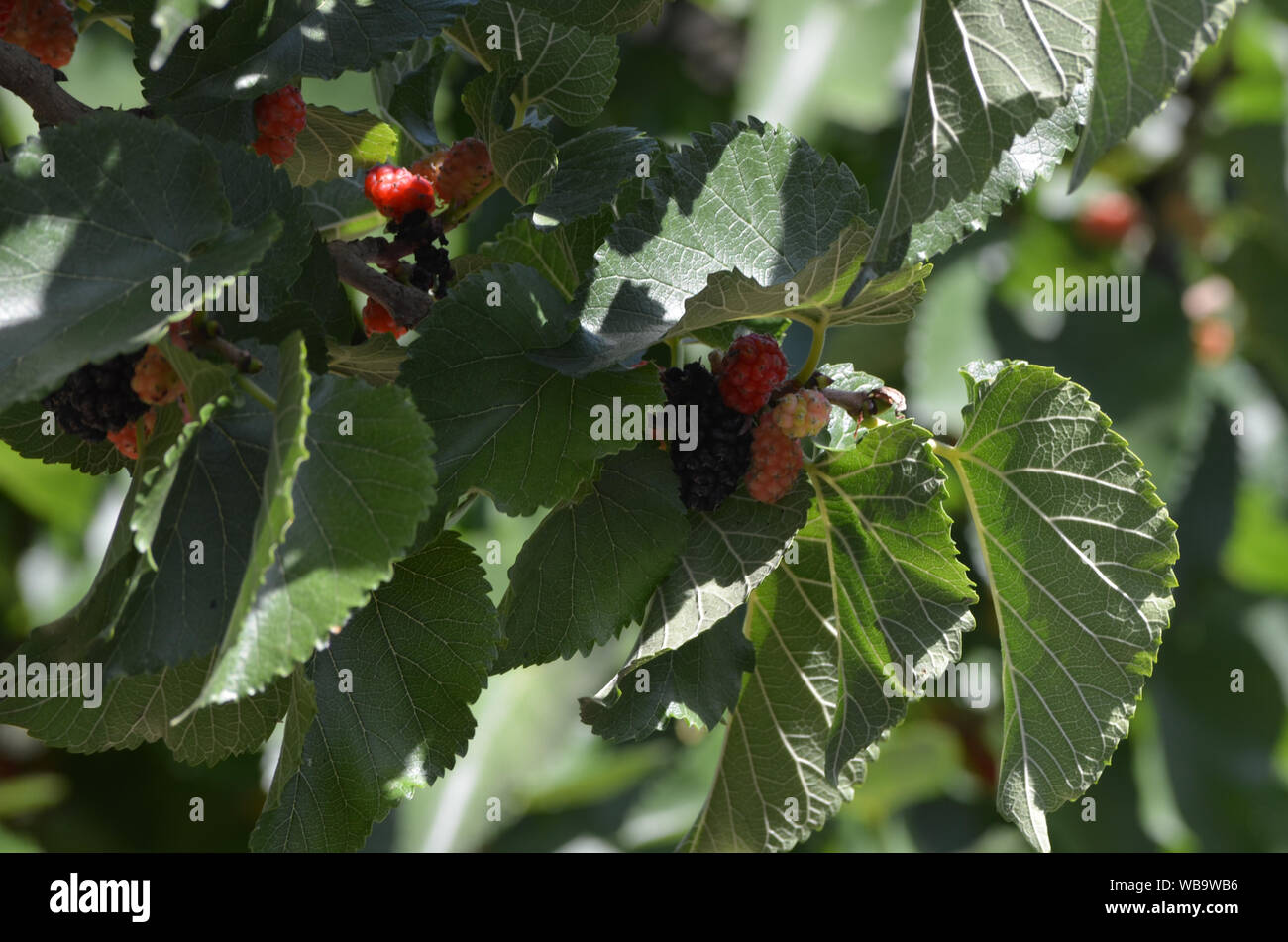 Black Mulberry Tree Morus Nigra Leaves And Fruits Nuratau