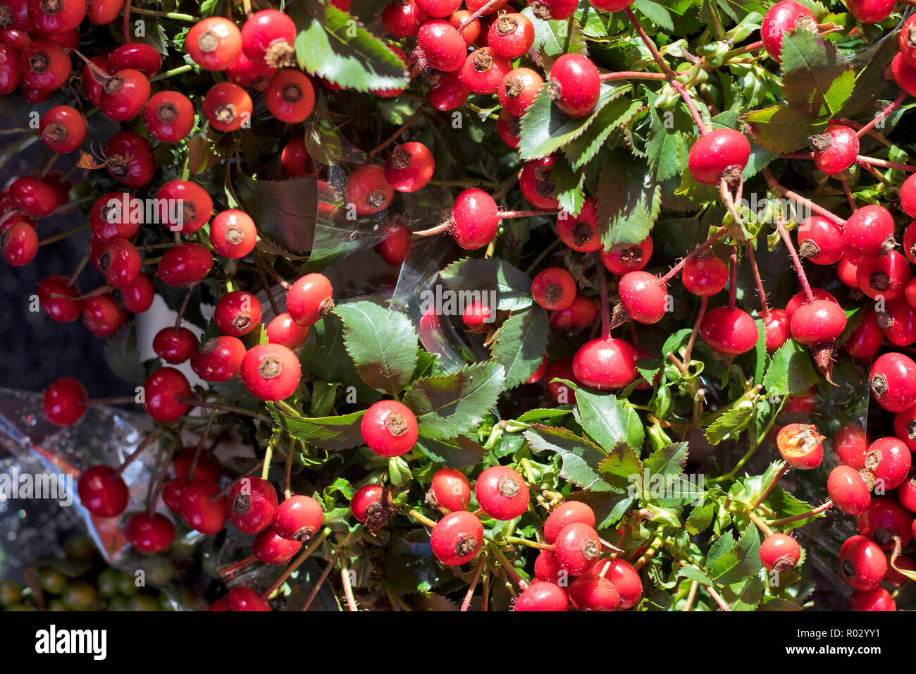 Ripe And Edible Red Berries Of The Hawthorn Genus Crataegus