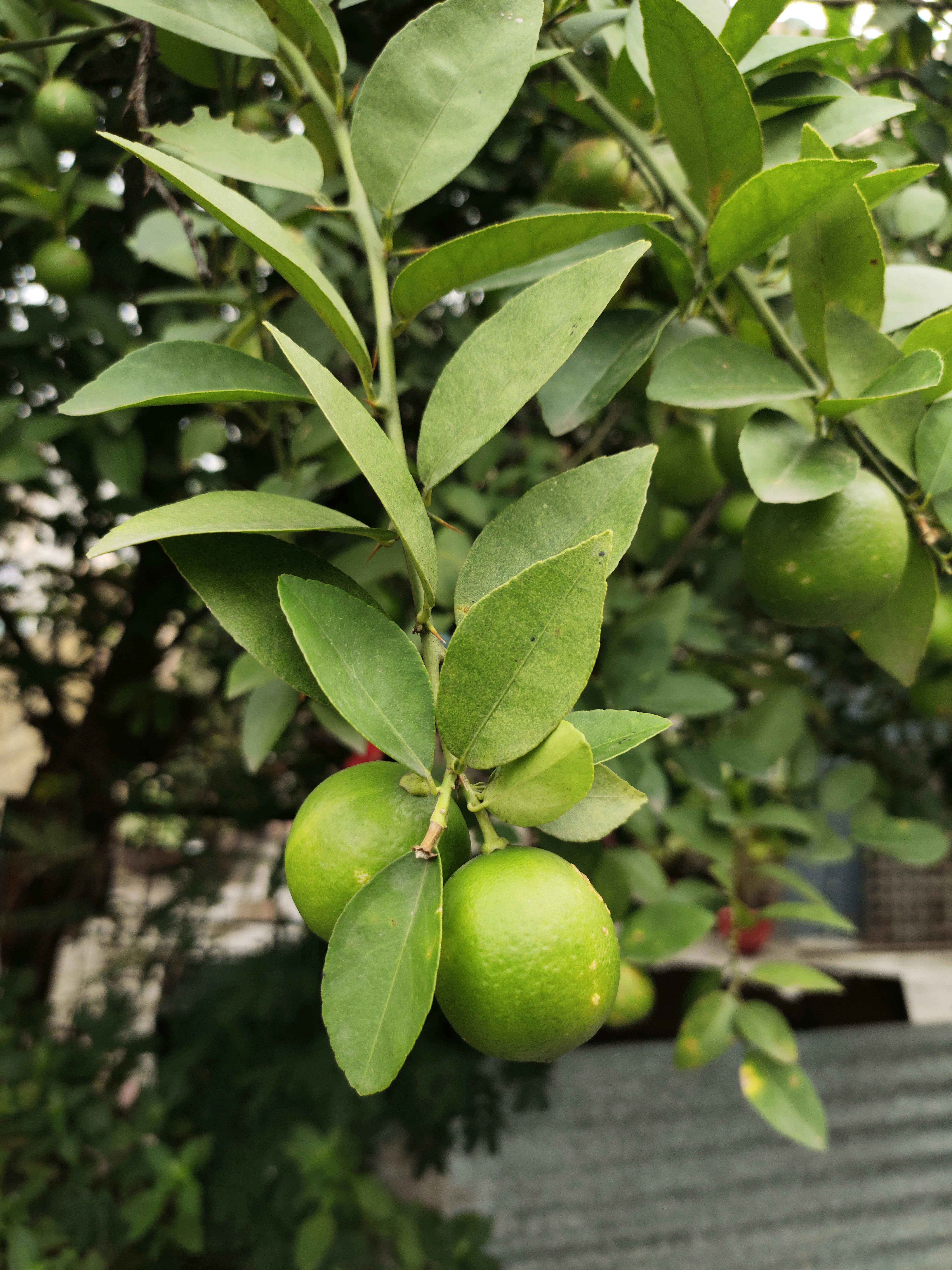 Round Green Citrus Fruits Hanging From A Tree Photo Free Plant