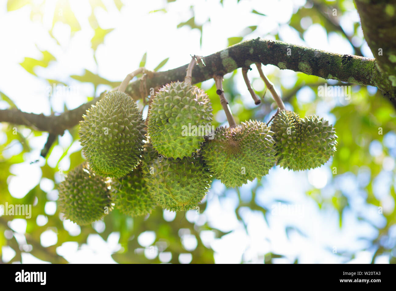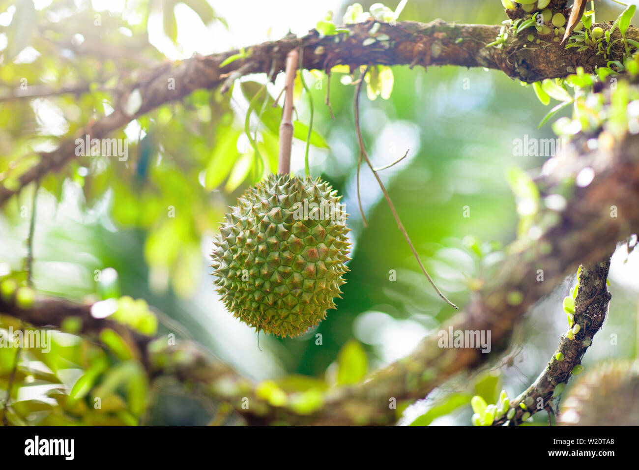 Durian Growing On Tree Exotic Tropical Fruits Of Thailand And