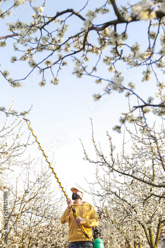 Agricultural Worker Spraying Pesticide Fruit Trees Disease Insect