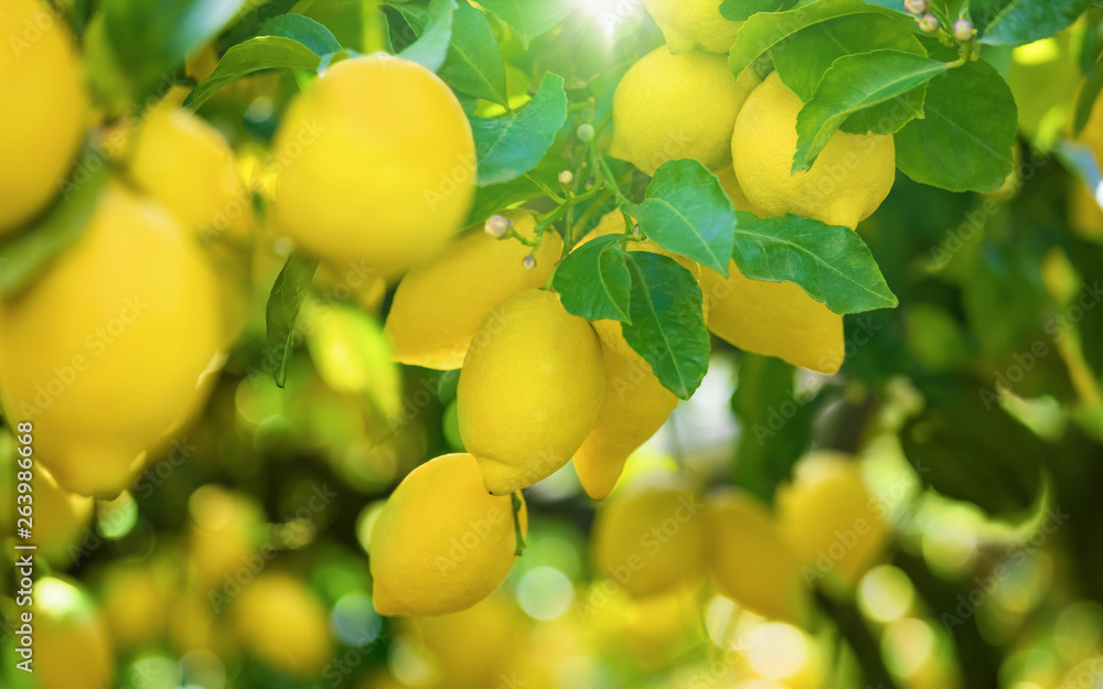 Photo Art Print Yellow Lemons On Lemon Tree Bright Sun Shines