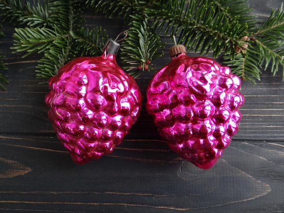 Big Pink Raspberries Glass Christmas Ornament Set Of 2 Etsy