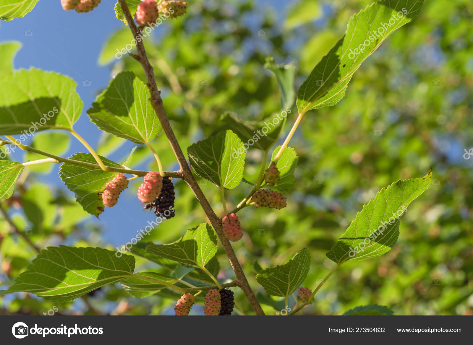 Fresh Ripe Mulberry Fruits Under Blue Sky Ready To Harvest In