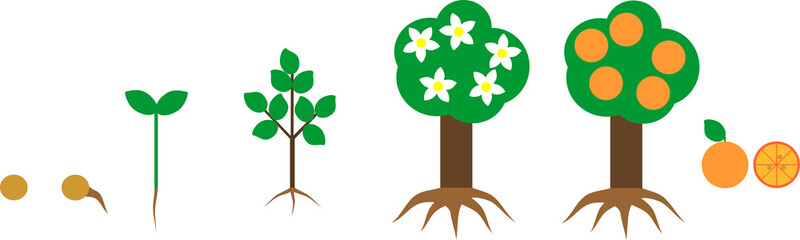 Life Cycle Of Orange Tree With Root System Plant Growth Stage