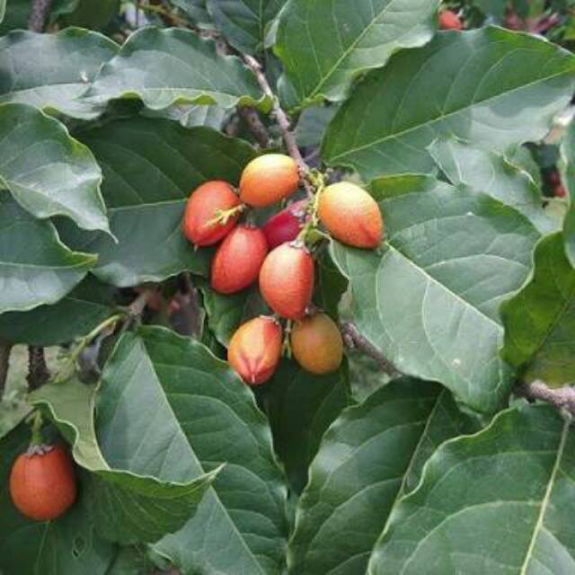 It produces small orange red fruits that are sericeous finely haired of pleasant taste similar to peanut butter.