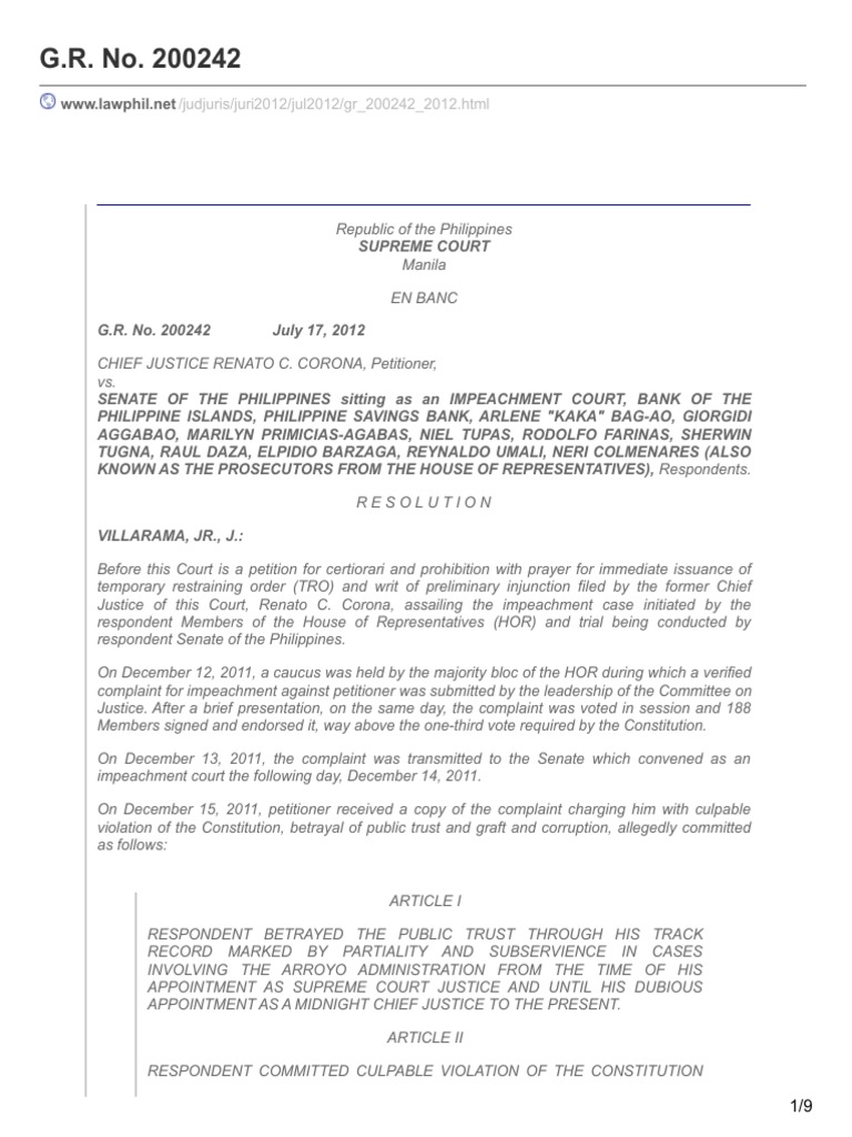 Lawphil Net Gr No 200242 Impeachment United States Constitution