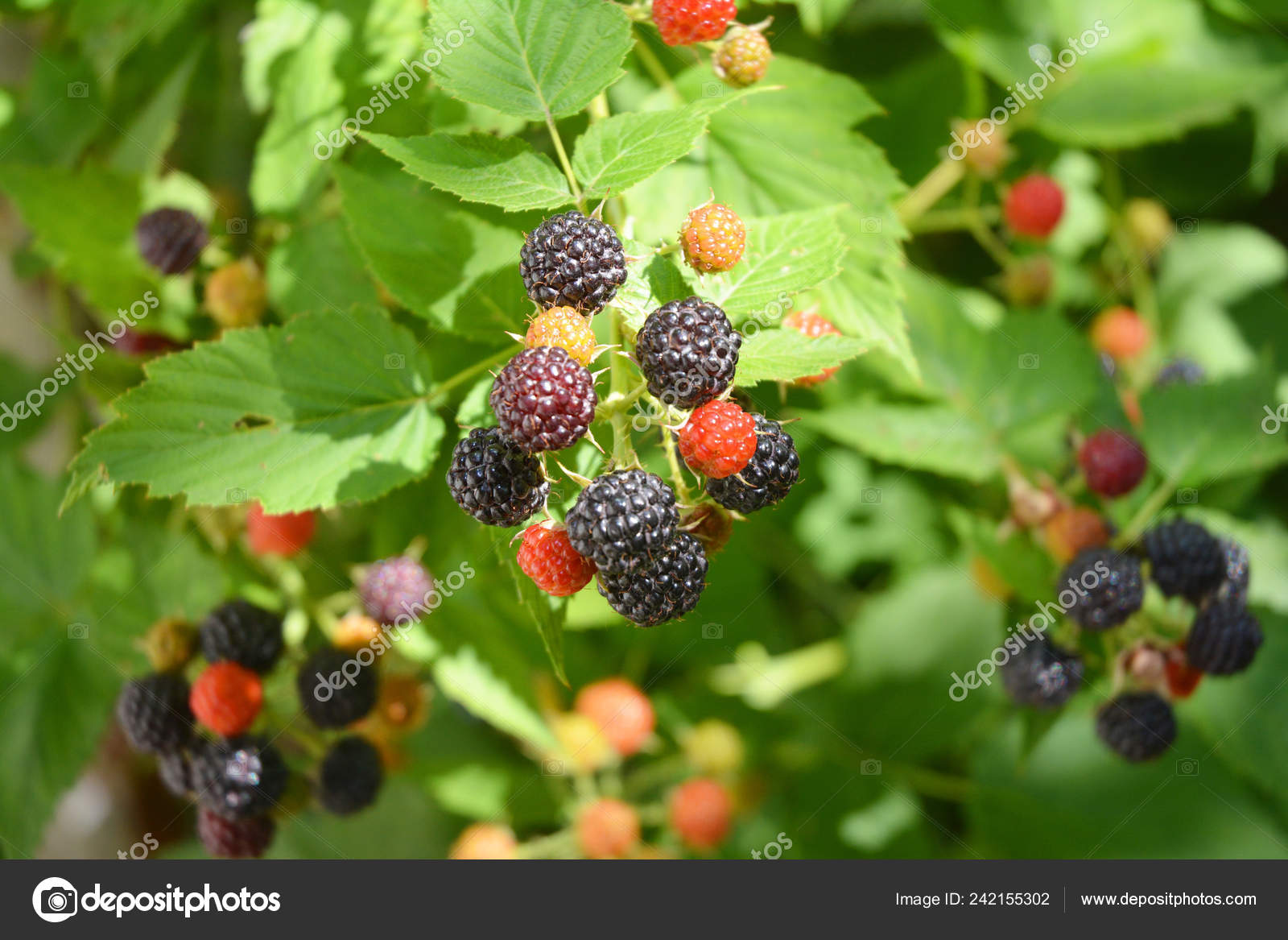 Blackberry Ripe Ripening And Unripe Green Fruits On Tree Stock