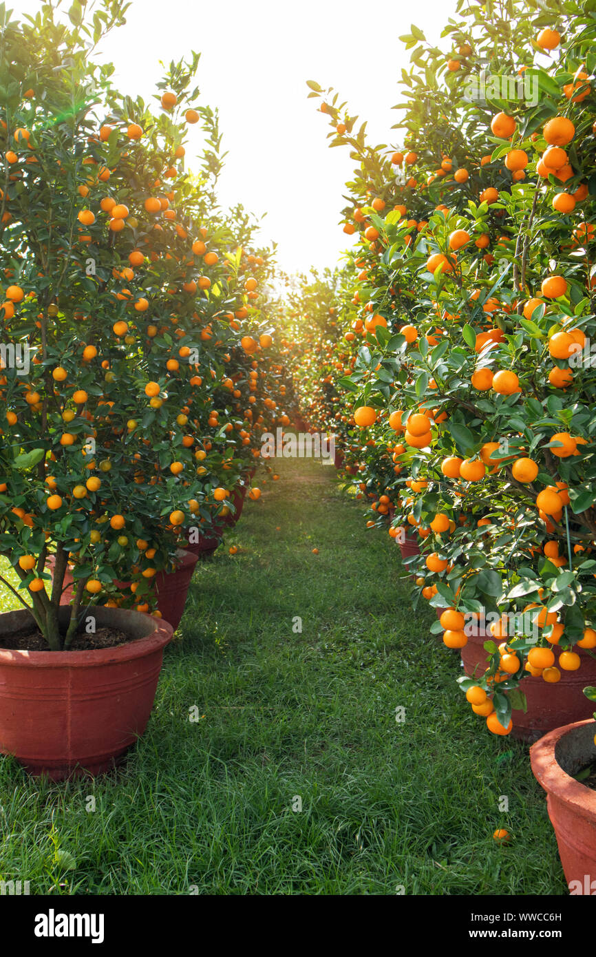Chinese New Year Mandarine Trees For Sale In A Row Photo Was Made